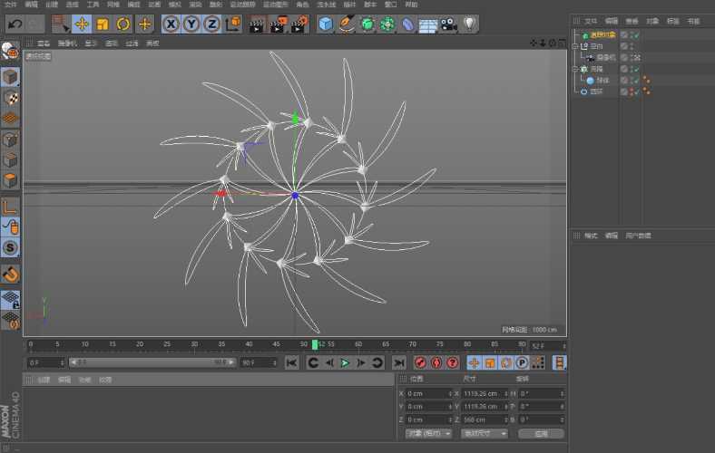c4d怎样把不同的模型排列在同一条样条路径上?