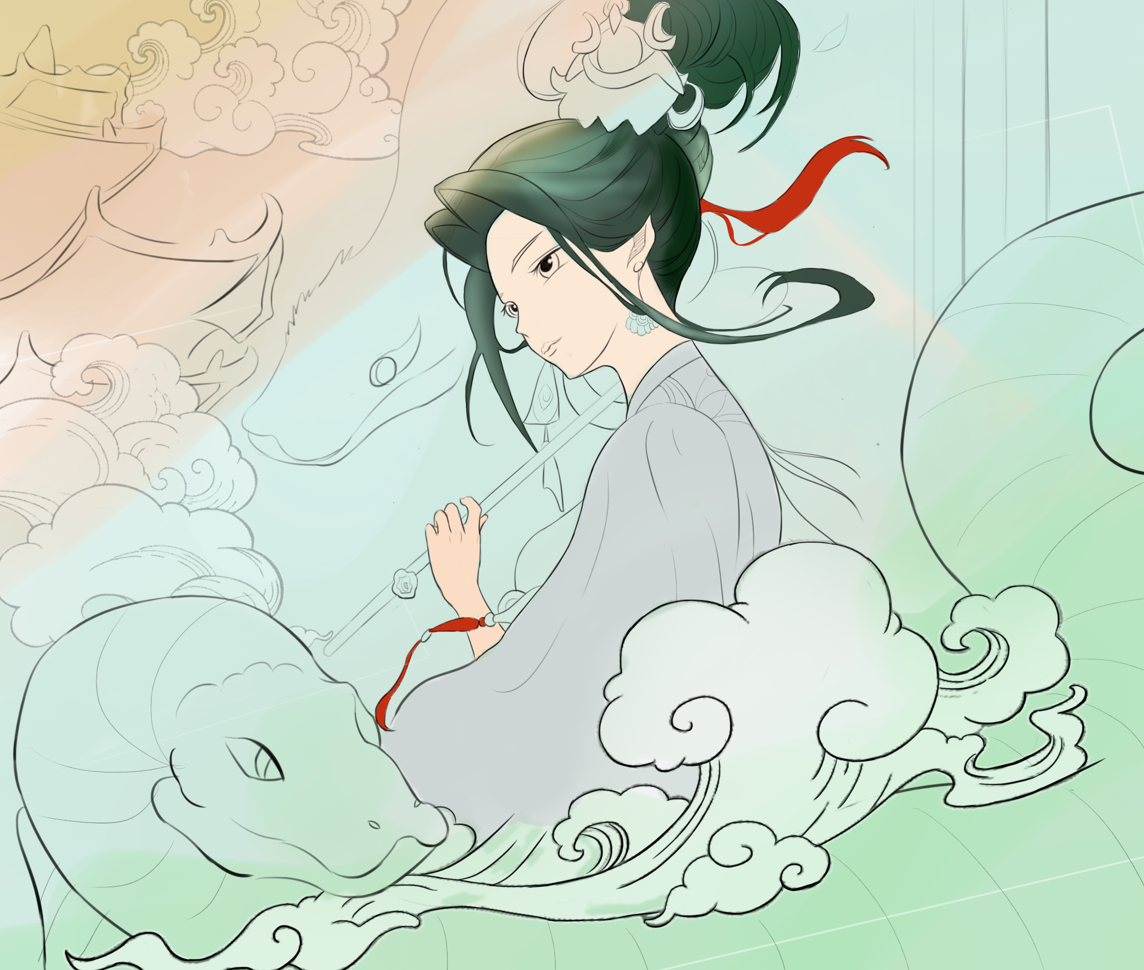 美女与蛇腾飞于天宫
