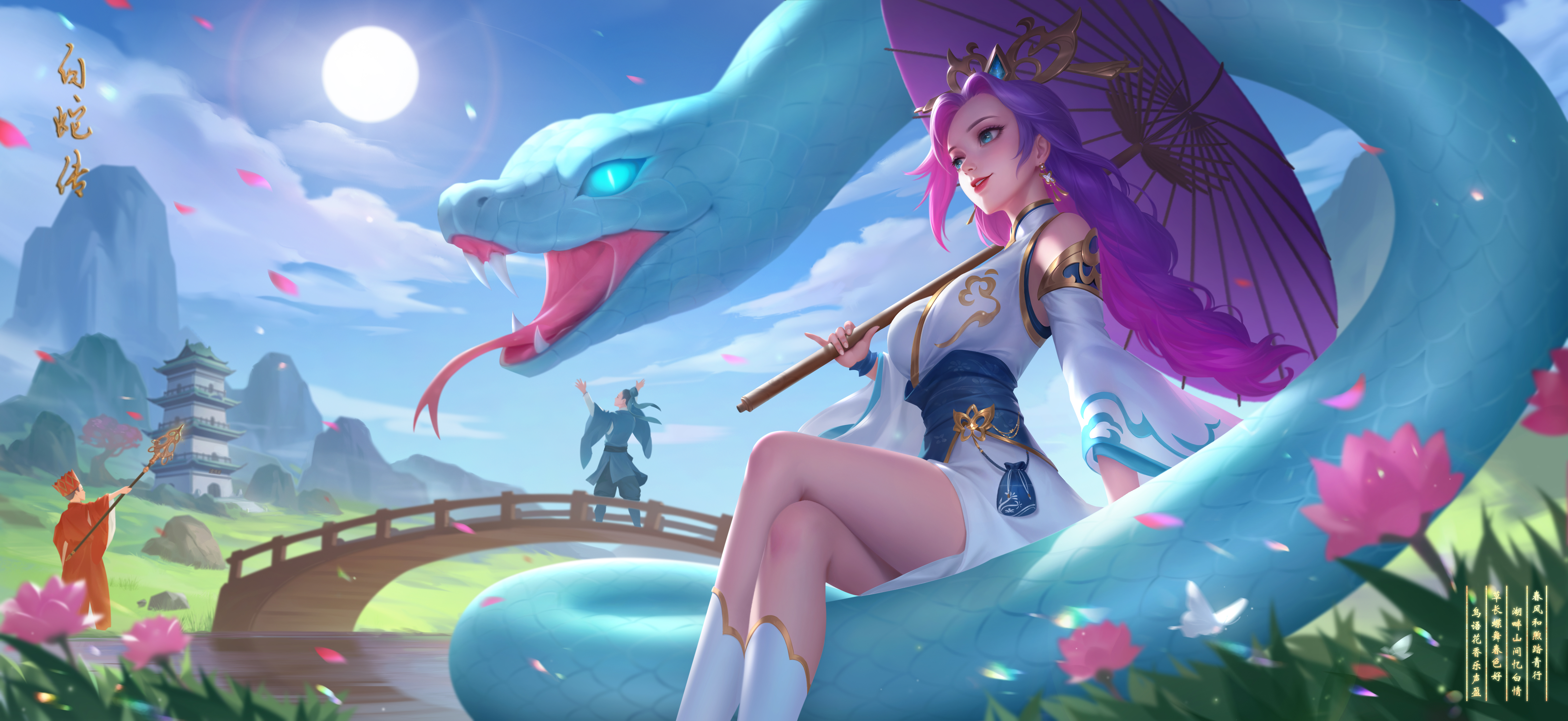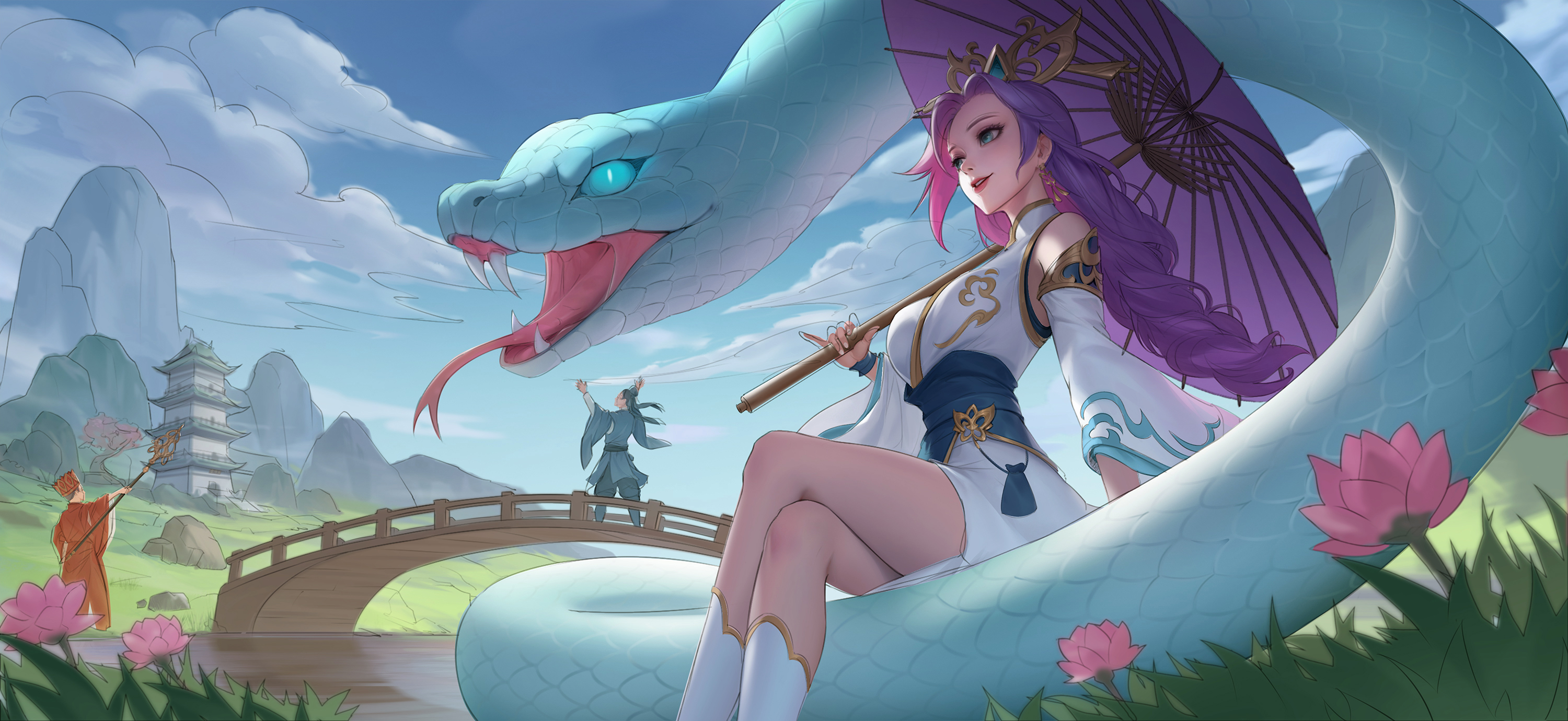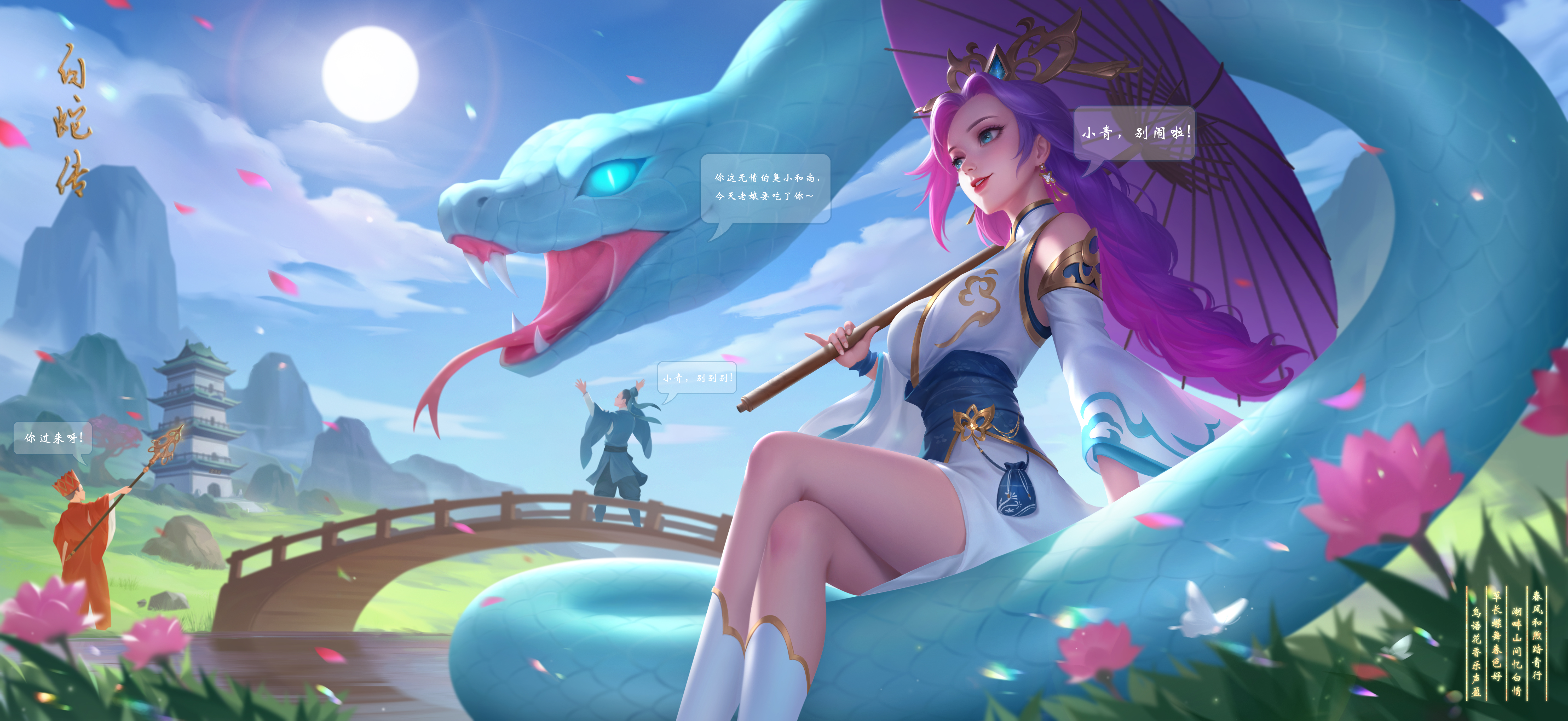 这是一个以白蛇传为主题的踏青故事,画面幽默风趣。天空晴朗,春意盎然,正是踏青的好时节。白蛇、青蛇、许仙与法海一同出游,他们的身后是雷峰塔和山峦。其中白娘子以人形现身,小青则保持着她那蛇形的原貌。在一幕生动的场景中,小青生气地怒吼着法海:“你这无情的臭小和尚,今天老娘要吃了你!”而许仙则站在断桥上,试图阻止这场纷争的升级。法海却似乎并不惧怕,反而挑衅地回应小青:“你过来呀!”而白娘子则在一旁温柔地劝解:“小青,别闹啦。”这场踏青之旅,也因此增添了几分欢笑与波折。😄