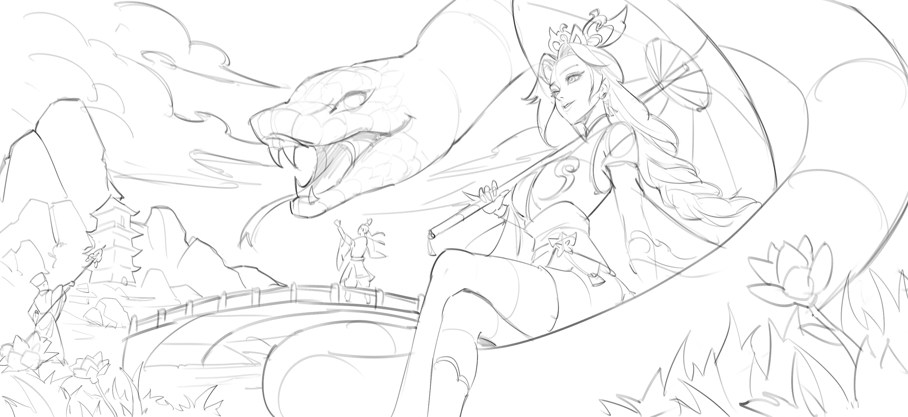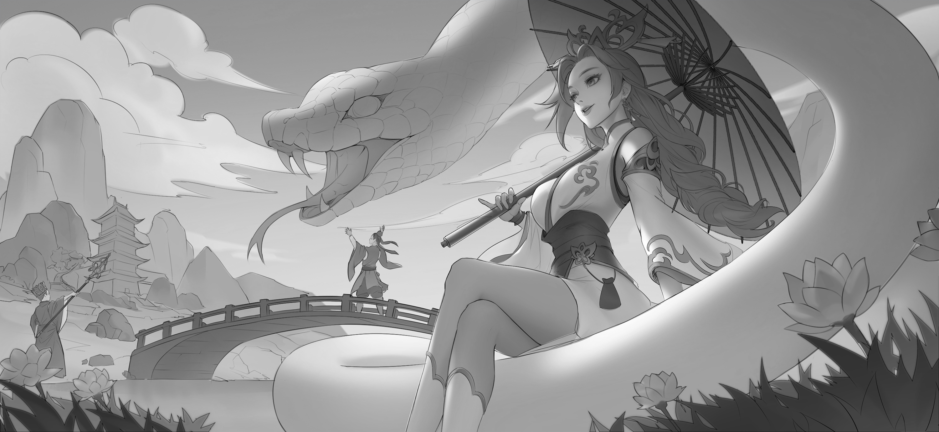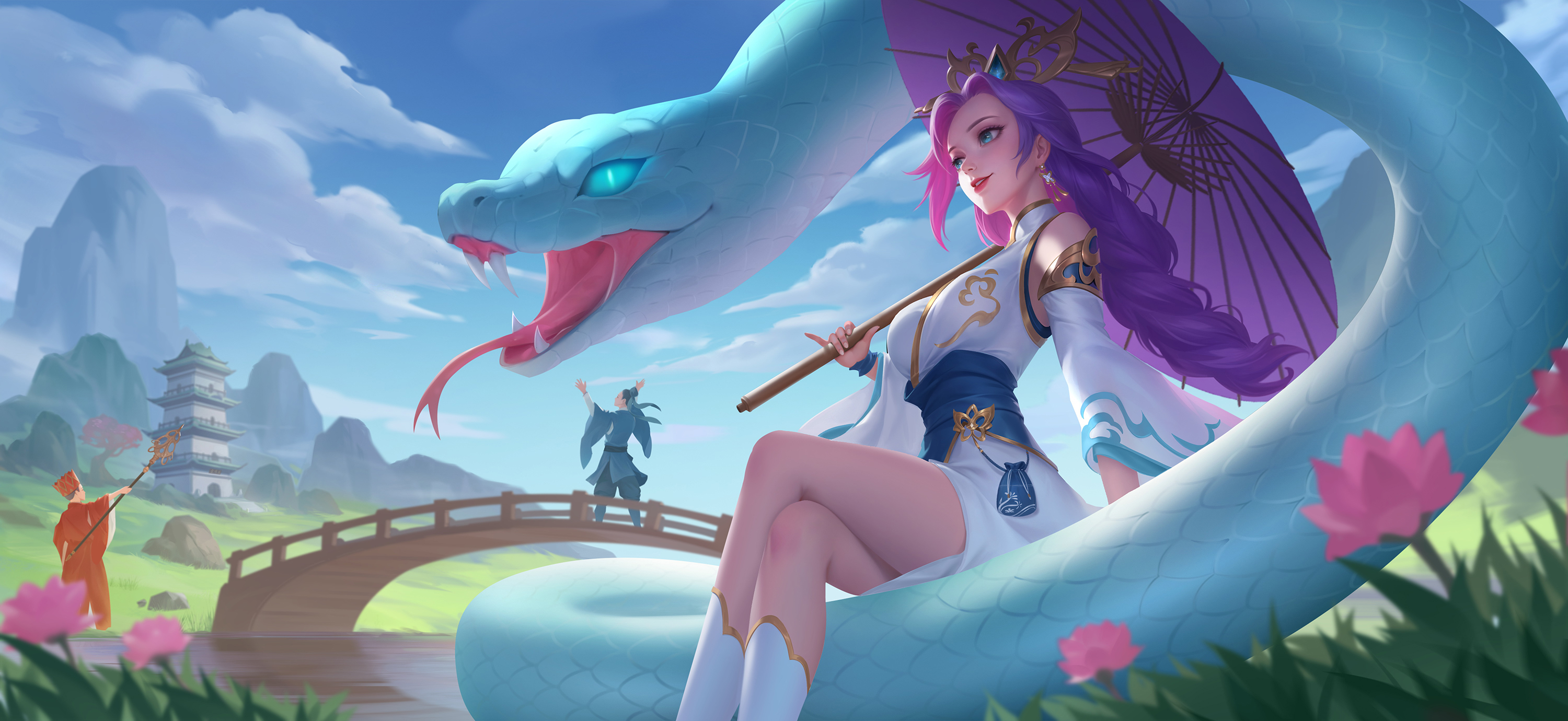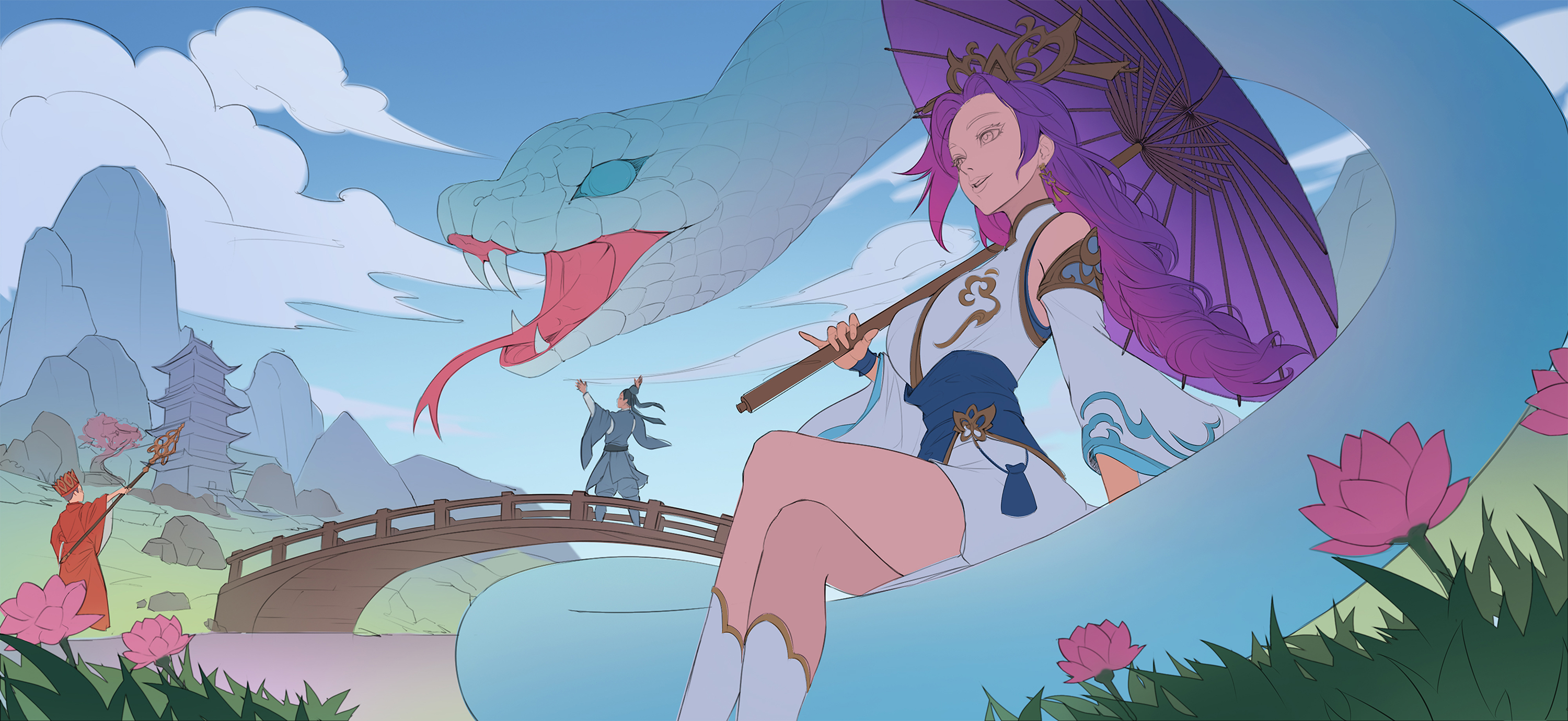 这是一个以白蛇传为主题的踏青故事,画面幽默风趣。天空晴朗,春意盎然,正是踏青的好时节。白蛇、青蛇、许仙与法海一同出游,他们的身后是雷峰塔和山峦。其中白娘子以人形现身,小青则保持着她那蛇形的原貌。在一幕生动的场景中,小青生气地怒吼着法海:“你这无情的臭小和尚,今天老娘要吃了你!”而许仙则站在断桥上,试图阻止这场纷争的升级。法海却似乎并不惧怕,反而挑衅地回应小青:“你过来呀!”而白娘子则在一旁温柔地劝解:“小青,别闹啦。”这场踏青之旅,也因此增添了几分欢笑与波折。😄