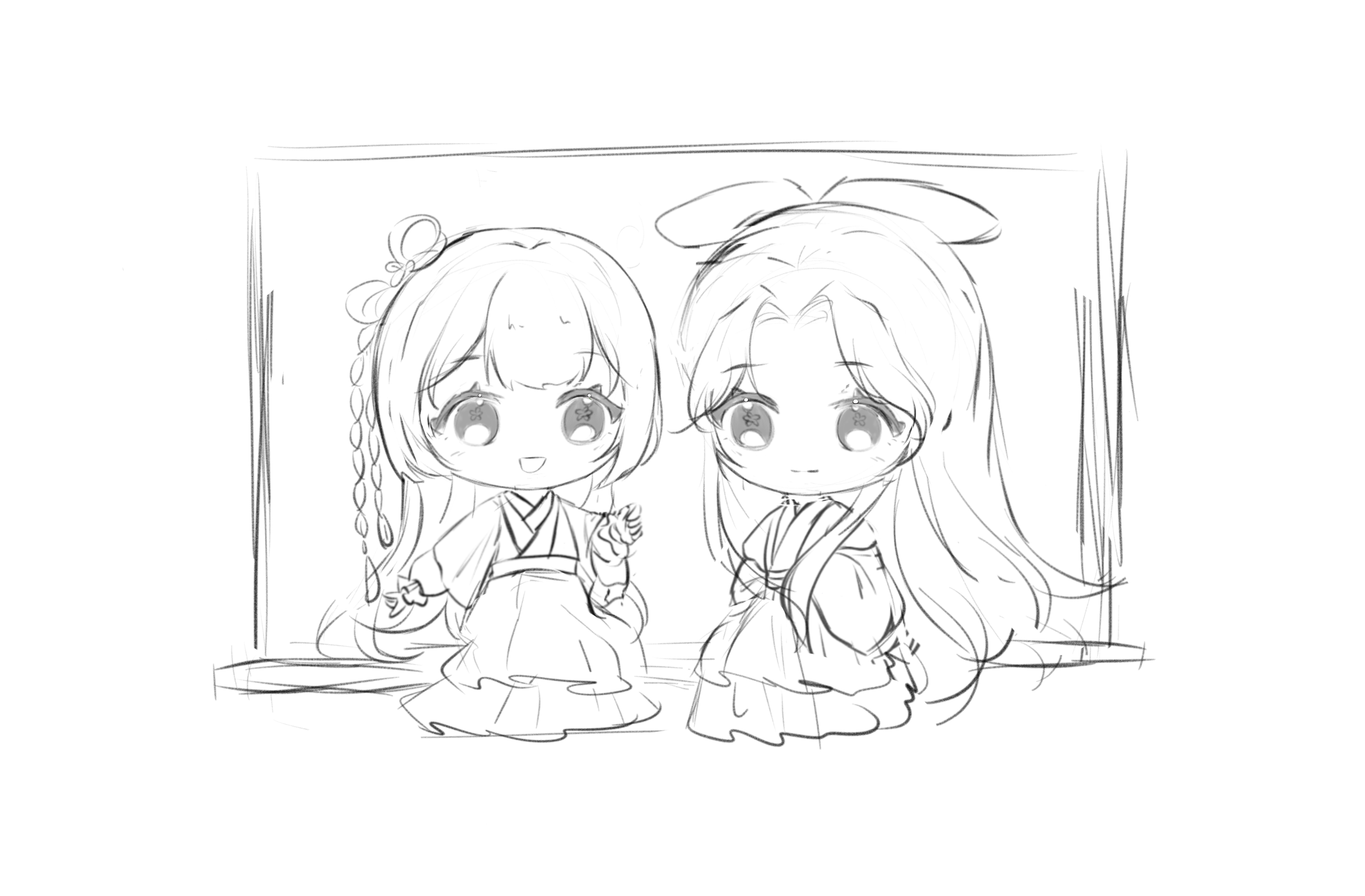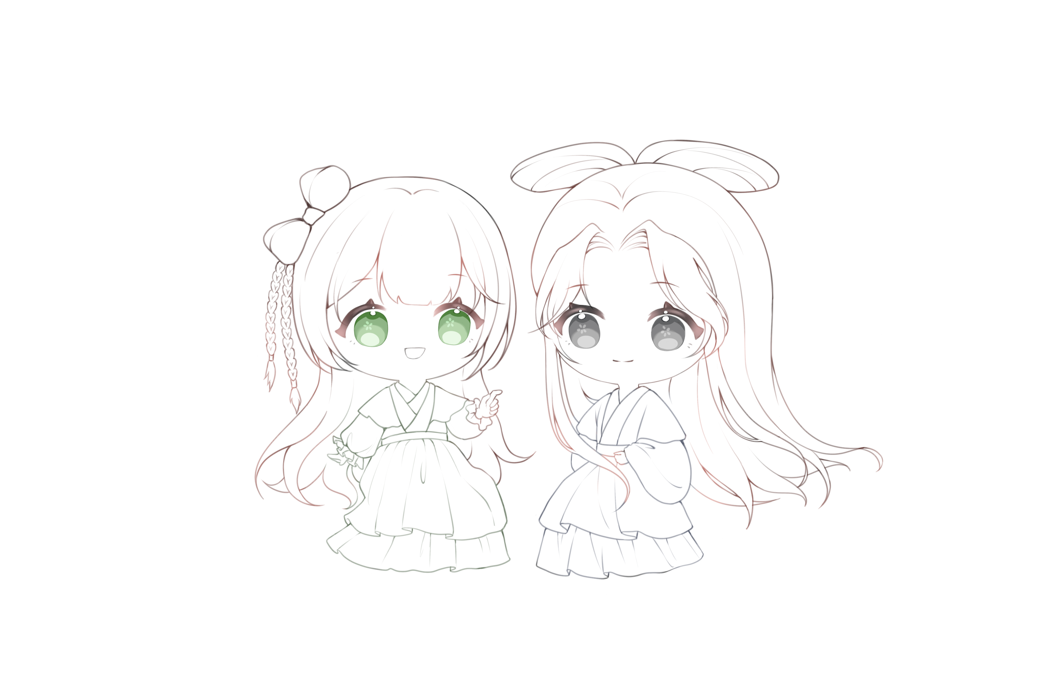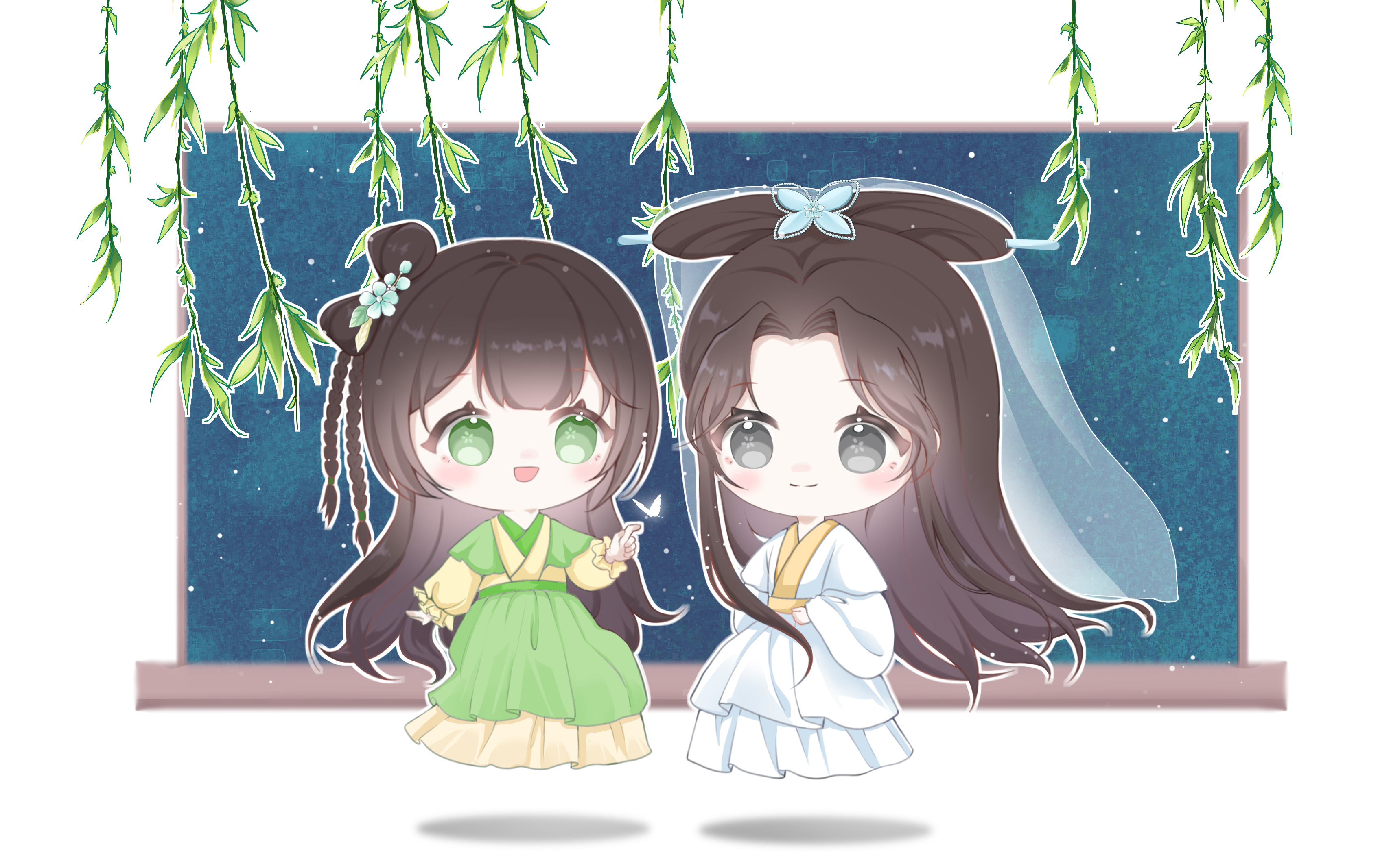 画了Q版的小青和白娘子。