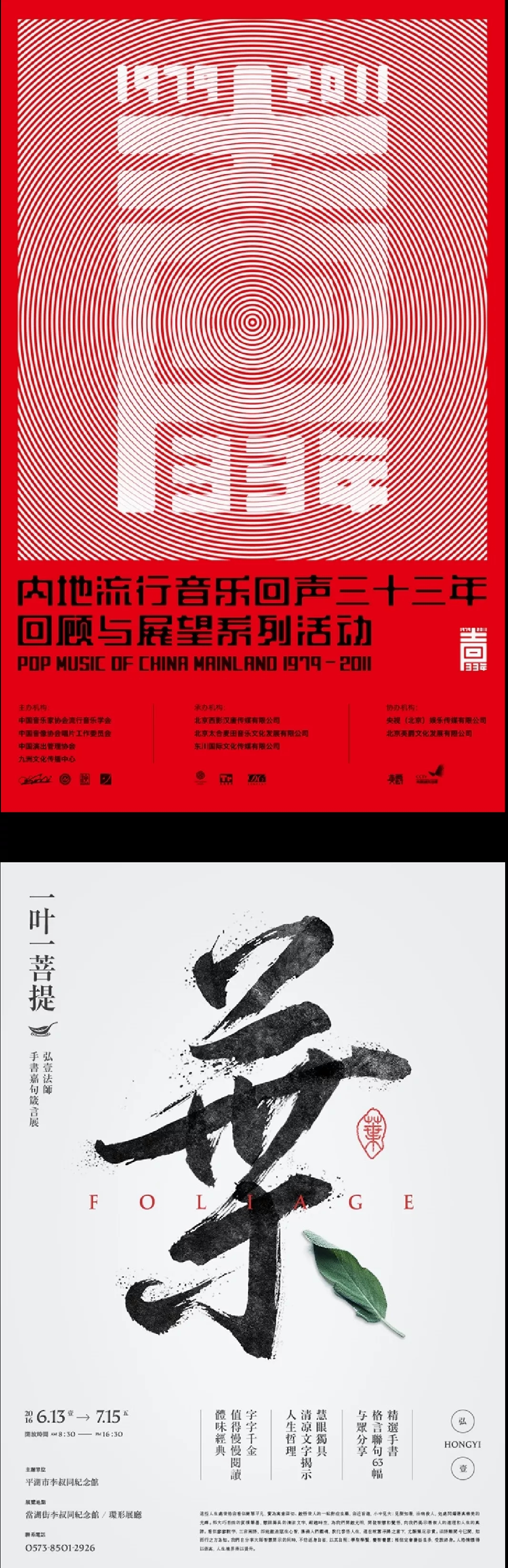 上下构图空间划分比较固定,为了得到丰富的视觉效果和良好的设计感,需要通过精心设计的编排来丰富版面的视觉效果。比如文字的横竖排版,元素之间的对比、点线面的运用、巧妙的留白等。