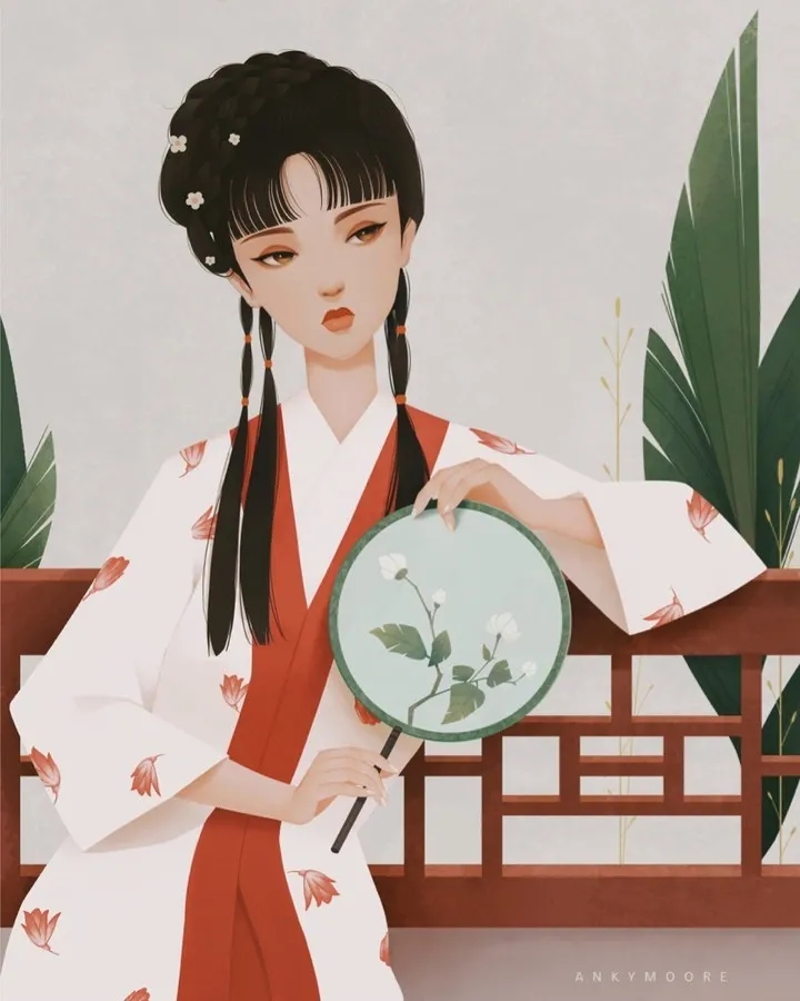 除了宫崎骏的人物,其他她还有很多中国风的插画作品。