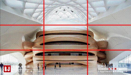 跟前面的九宫格很像,但它们之间有一个重要区别。九宫格是将图片分成三个相等的部分,即1:1:1,而黄金分割九方格则是按1:0.618:1划分。
